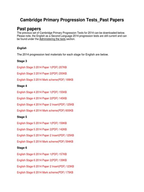 Read Online CAMBRIDGE PRIMARY PROGRESSION TEST PAST PAPERS ENGLISH Doc
